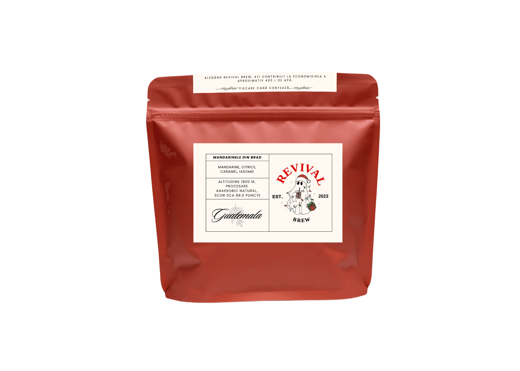 Mandarinele din Brad este o cafea vibrantă și festivă, originară din regiuni montane ale Guatemalei — locuri unde altitudinea de 1800 m, solurile fertile și aerul rece de noapte creează condiții ideale pentru cafele florale, citrice și extraordinar de curate. Este un microlot rar, procesat Anaerobic Natural, care pune în valoare dulceața naturală a boabelor și definește un profil aromatic intens.